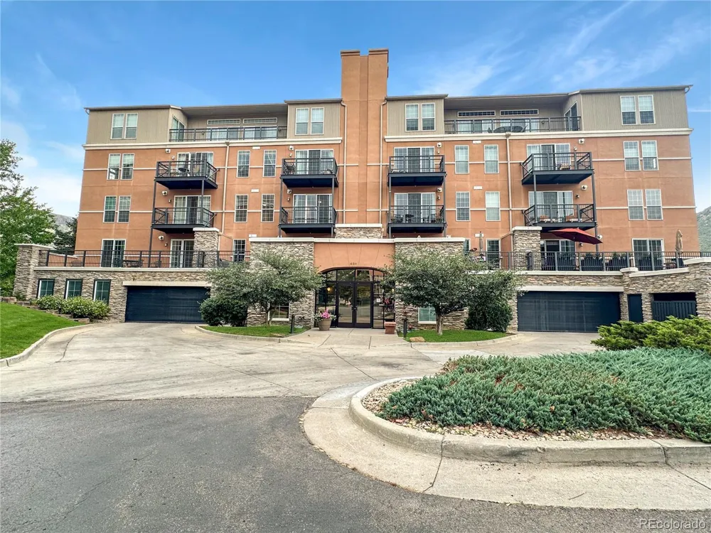 Relax on your private balcony and take in the sunset over the foothills & the gorgeous view of Clear Creek. Incredible location, just steps from the Golden Mill food hall, shopping, coffee shops, bars, restaurants, Clear Creek Trail and everything else that downtown Golden has to offer. West facing, sunny location with views of downtown Golden & the foothills. Thoughtfully designed floor plan includes a large kitchen island. Main bedroom features a huge walk in closet. The second bedroom/den/office (no closet or window) has French doors and makes a nice little guest room. The bathroom is thoughtfully designed for multiple use featuring a separate tub & shower, door and an extra sink. Heated garage with one assigned parking spot and secure entrance. Plenty of guest parking. Well managed and maintained complex w/ reasonable HOA dues. This is the one you've been waiting for!